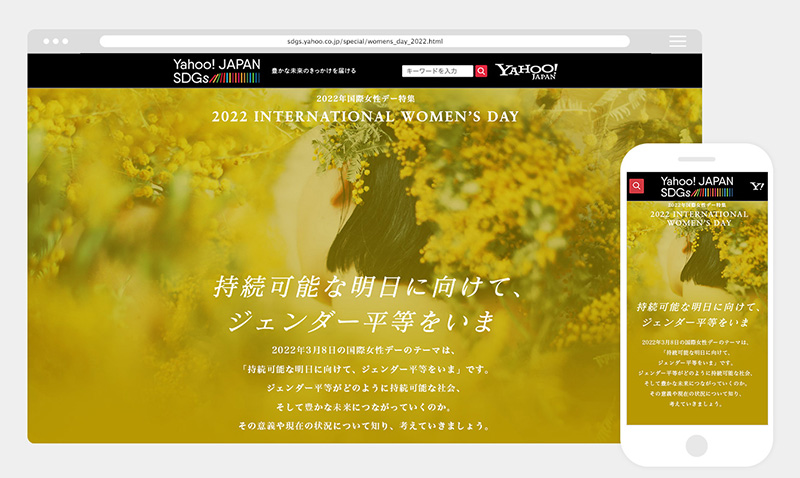 Yahoo!JAPANA SDGs 2022年国際女性デー特集 ポータルサイト