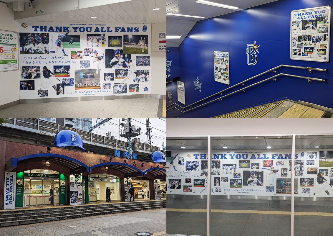 1年間応援してくださったファンの皆様に感謝を伝える広告を横浜駅、本拠地・横浜スタジアム近くのJR関内駅、