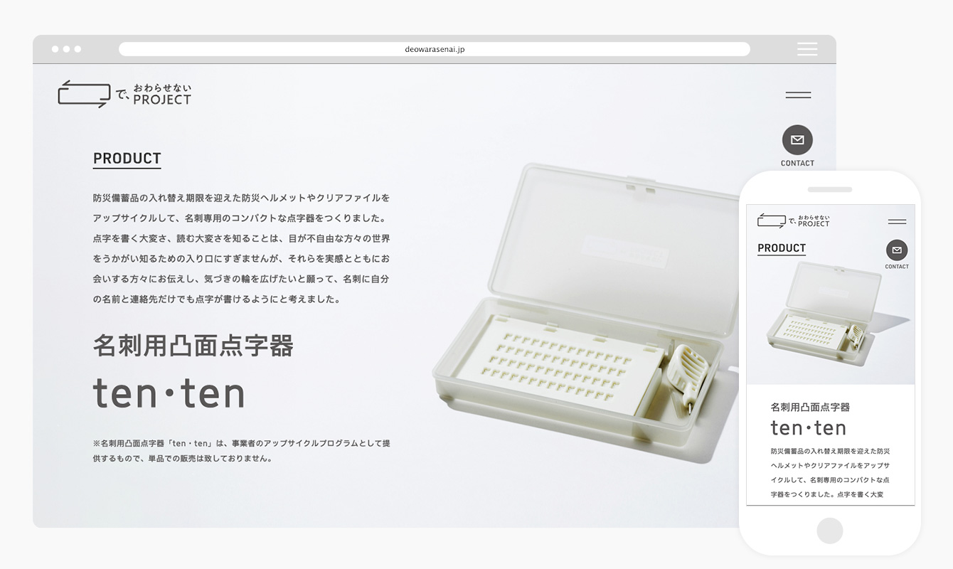 WEBサイトのデザインを担当した「名刺用凸面点字器ten・ten(テンテン)」が